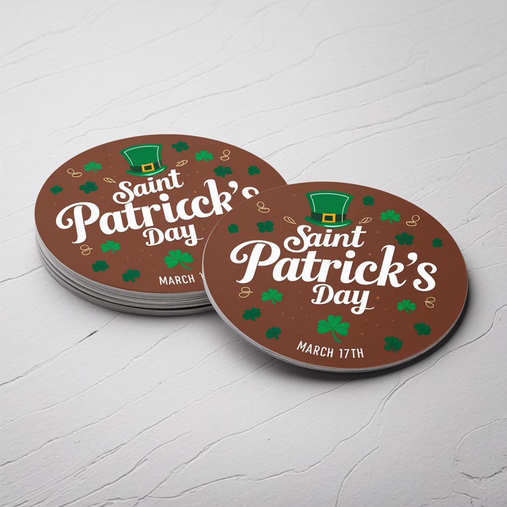 Festlige bordskånere med St. Patrick's Day-designs. Tilpasselig med navne, logoer eller beskeder. Perfekt til fester, pubber og fejringer.