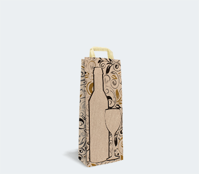 Mønstret papirbærepose med flade håndtag til 1 flaske